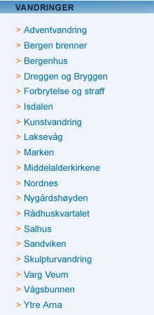Vi arrangerer en rekke faste byvandringer i ulike bydeler i serien "Vi vandrer i smug". På de faste turene er det bare å møte opp. Ingen forhåndsbestilling nødvendig. De fleste turene varer 1,5 time. Vi tilbyr også byvandringer for grupper, og skreddersyr gjerne program. Kontakt oss for tilbud.