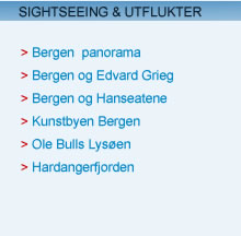 Vi tilbyr et variert utvalg av sightseeinger og utflukter i og omkring Bergen. Attraksjoner kan legges inn i turen etter ønske, og våre guider tar seg også av omvisningene der. Vi tilpasser program, varighet og transport til ethvert behov både for grupper og individuelle. |