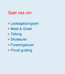 Våre guider henter på flyplassen etc og tar imot dine gjester ved ankomst og sørger for en hyggelig og informativ start på bergensbesøket. Vi kan også ordne med transport. |